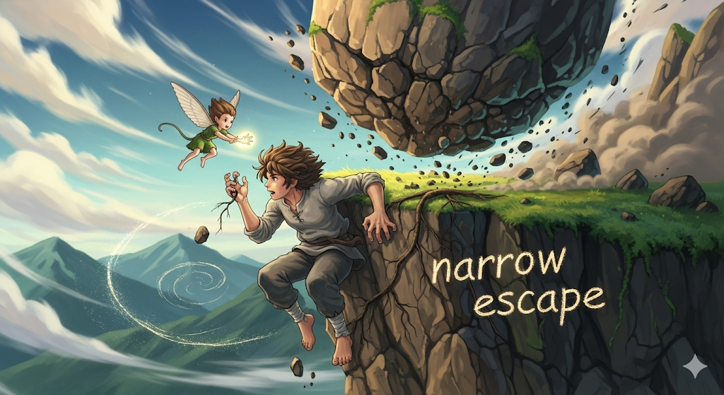 - 해석: 간신히 탈출함, 가까스로 모면함