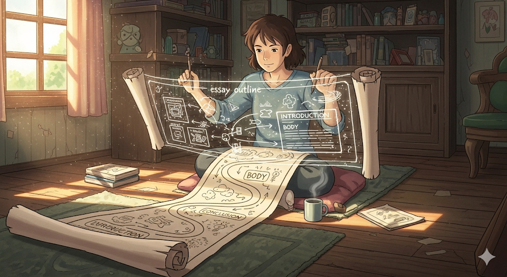 글쓰기를 시작하기 전에, 에세이 개요를 작성하세요.