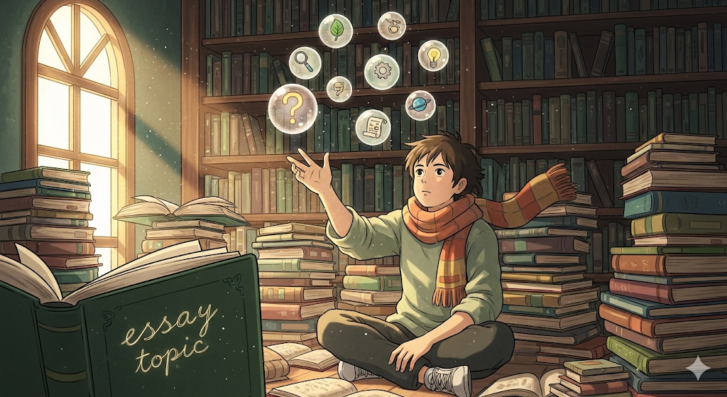 - (선생님이 선택할 수 있는 세 가지 에세이 주제를 주었다.)