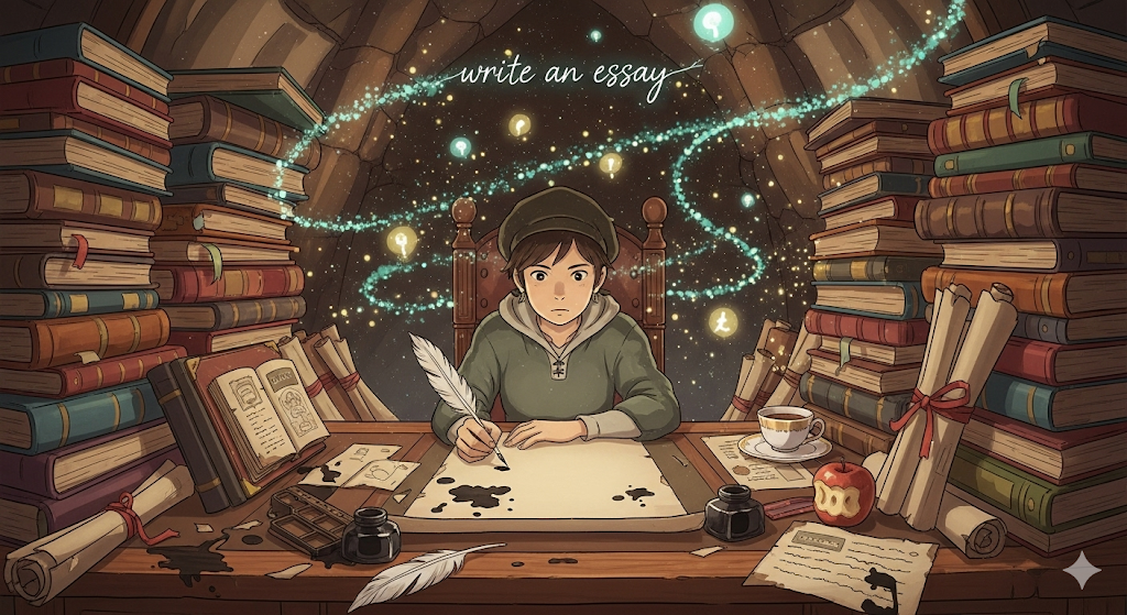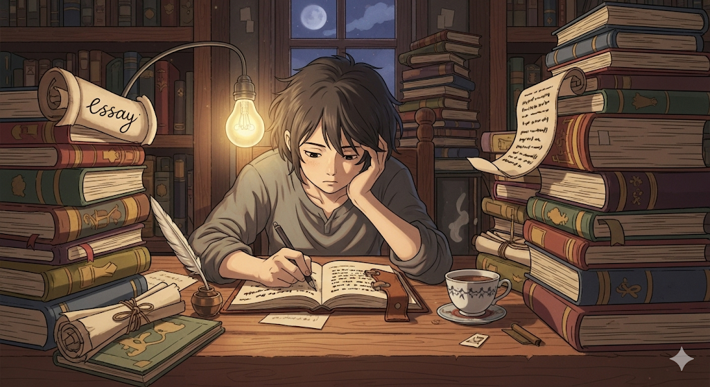 - 해석: 에세이를 쓰다, 글을 작성하다