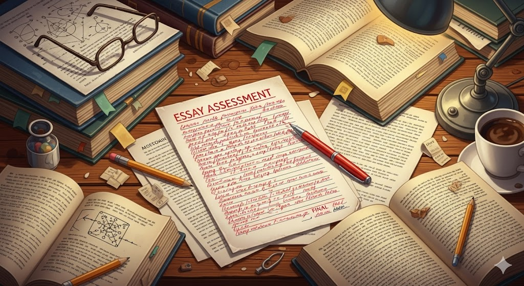 에세이 평가. 에세이를 점수화하거나 질적으로 평가하는 과정.