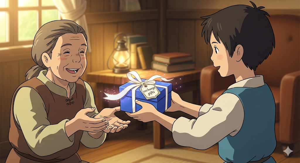 - 해석: 선물을 교환하다
