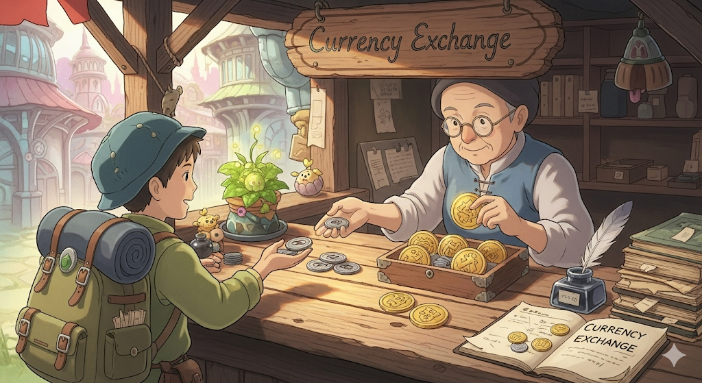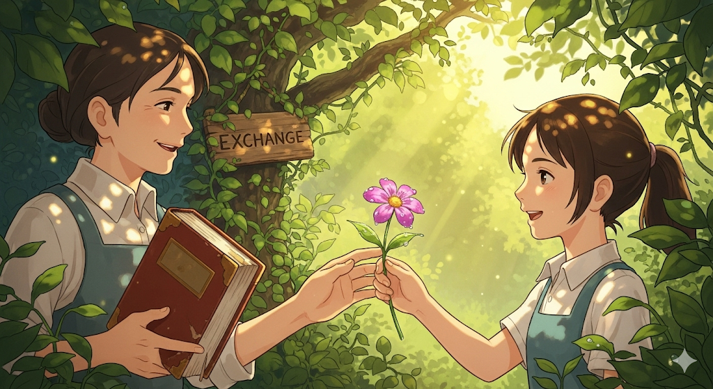 어떤 것을 대가로 다른 것을 주고받는 행위를 의미합니다. 물물교환처럼 물건을 맞바꾸는 것부터, 돈을 다른 통화로 바꾸는 '환전', 또는 의견이나 정보를 **'교류하는 것'**까지 포괄합니다. '상호 간의 주고받음'이라는 개념이 핵심입니다.