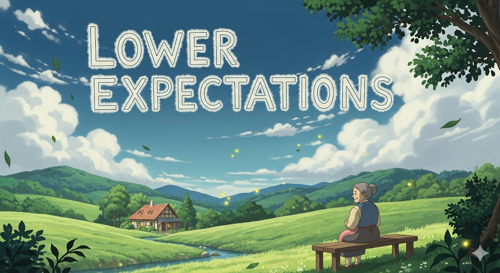 - *'lower expectations'**는 현실에 맞게 기대를 조절하거나, 실망을 피하기 위해 미리 기대를 줄이는 것을 의미합니다.