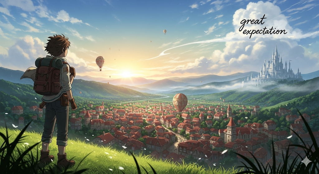 - *'great expectations'**는 미래에 대한 긍정적이고 높은 수준의 기대를 나타내는 표현으로, 긍정적인 상황이나 포부를 설명할 때 사용됩니다. 또한, 찰스 디킨스의 소설 제목으로도 잘 알려져 있습니다.