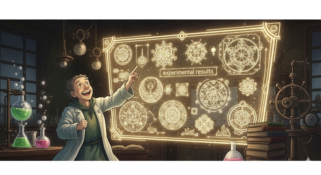 과학 실험. 과학적 방법론에 따라 가설을 검증하는 체계적인 실험.