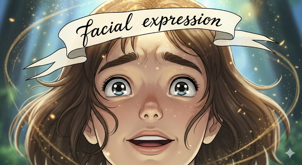 - 예문: His facial expression showed that he was surprised.