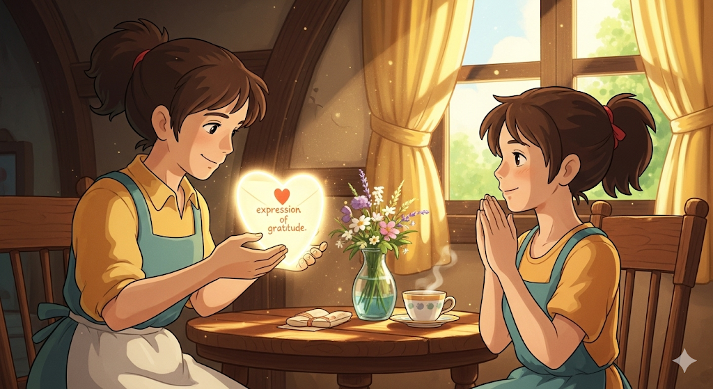 - *'expression of gratitude'**는 감사하는 마음을 상대방에게 전달하는 행위를 공식적으로 나타내는 표현입니다.