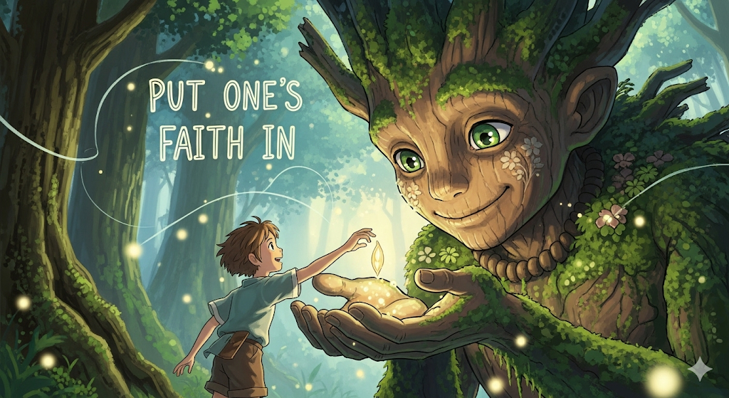 | put | 놓다, 두다 | 동사로, '믿음'을 '어떤' '대상'에게 '두는' '행위'. | one’s faith와 결합하여 '자신의' '믿음'을 '어떤' '대상'에게 '부여'함을 나타냄. |