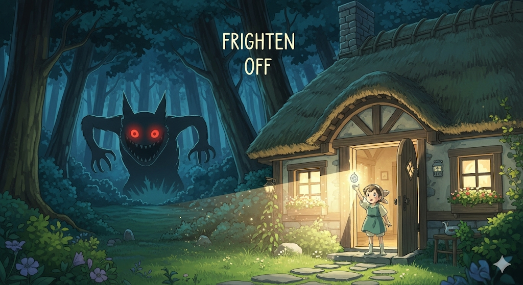 - 해석: 겁을 주어 쫓아내다
