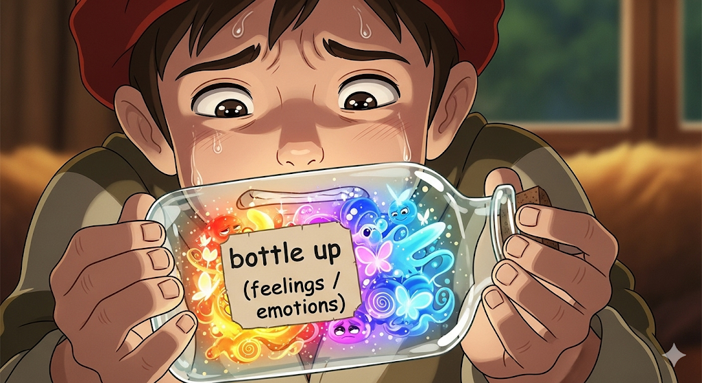 - 예문: Don’t bottle up your feelings—share them with someone you trust.