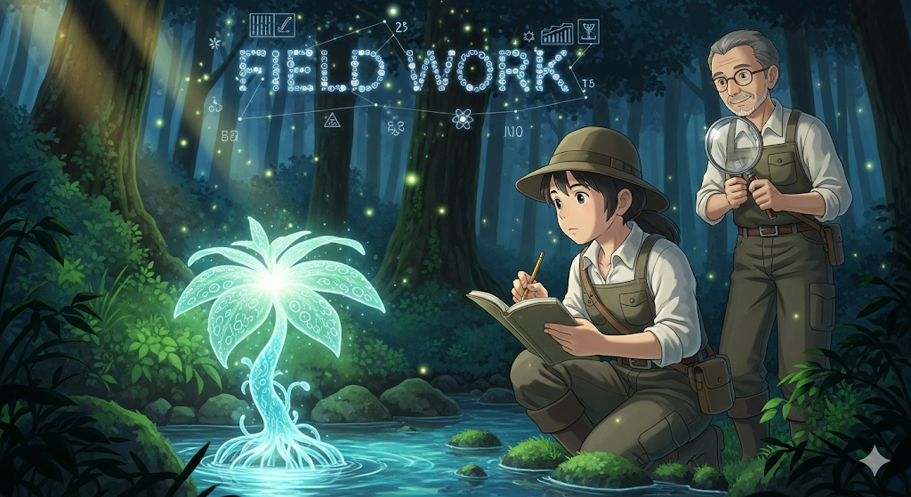 연구(research), 조사(investigation), 또는 학문적 자료(data) 수집을 위해 '교실(classroom)이나 실험실(laboratory) 밖의', '실제 환경(field)에** 나가서 수행하는 **작업'**을 의미합니다. '이론(theoretical)과 대비되는 실질적인 현장 **경험'**에 초점이 맞춰져 있습니다.
