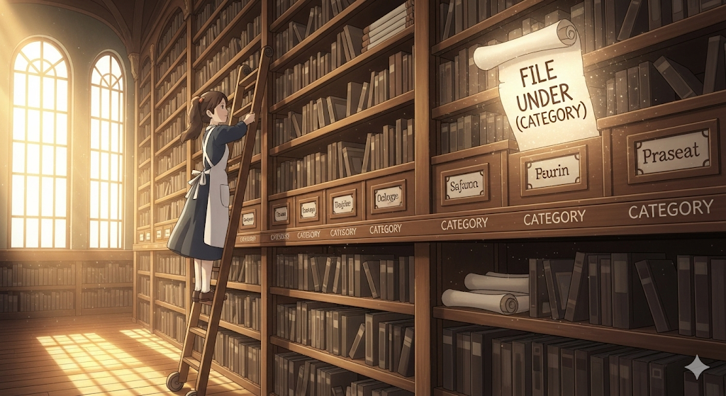 - 해석: (카테고리에) 분류하다, 저장하다