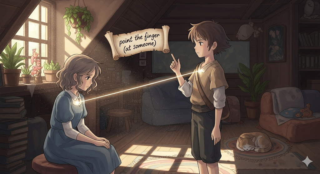 - 예문: Many people pointed the finger at the government for the economic crisis.