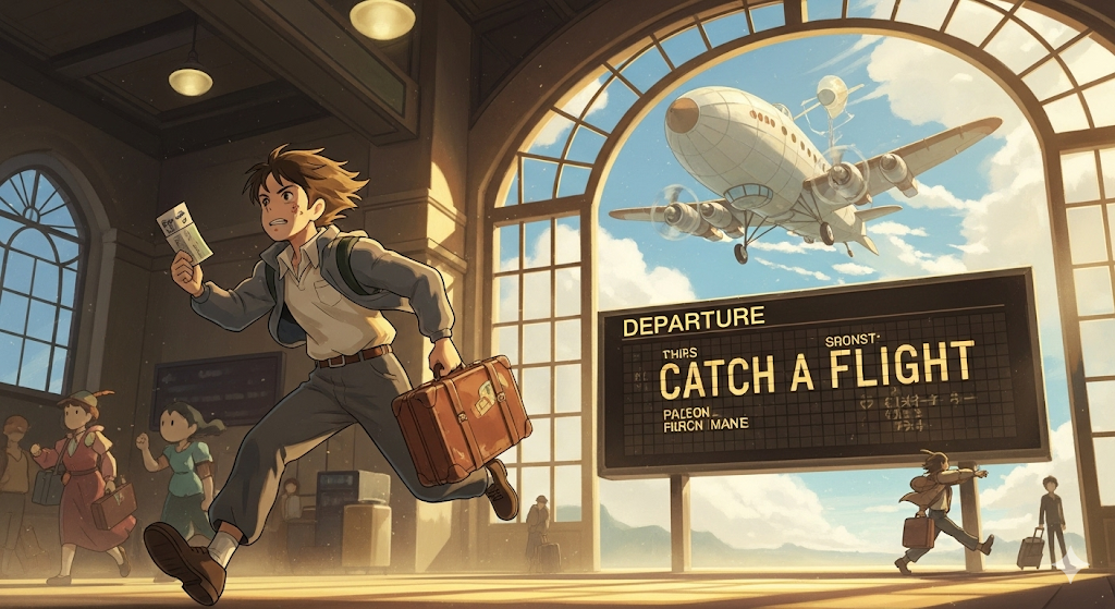 - *'catch a flight'**는 시간적 긴박성을 내포하며, 비행기 탑승을 놓치지 않으려는 노력을 강조합니다.