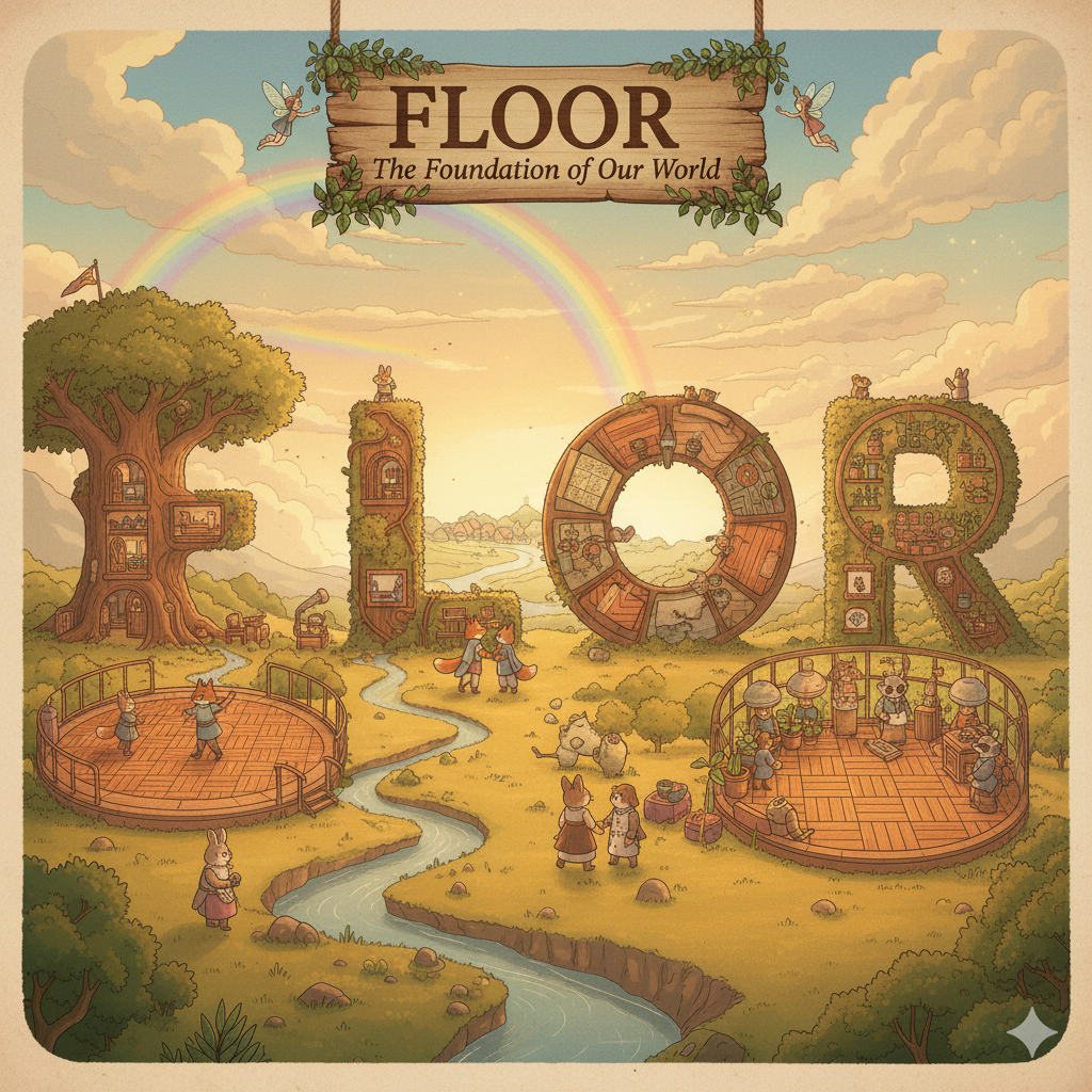 건물의 **가장 낮은 평평한 표면(바닥)**을 의미하며, 건물의 **수평적인 한 단위를 나타내는 '층'**이라는 뜻도 가집니다. 일반적으로 사람들이 서 있거나 물건을 놓는 물리적인 지지대 역할을 하는 표면을 나타냅니다.