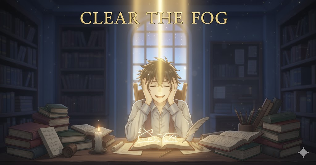 물리적으로 짙은 안개(fog)가 '사라지게' 하는 행위를 의미합니다. 비유적으로는 '혼란스럽거나 멍한 정신 **상태'**나 '논의(discussion)의 불명확함'을 '해소(clear)하고 명확성'을 확보하는 행위에 초점이 맞춰져 있습니다.