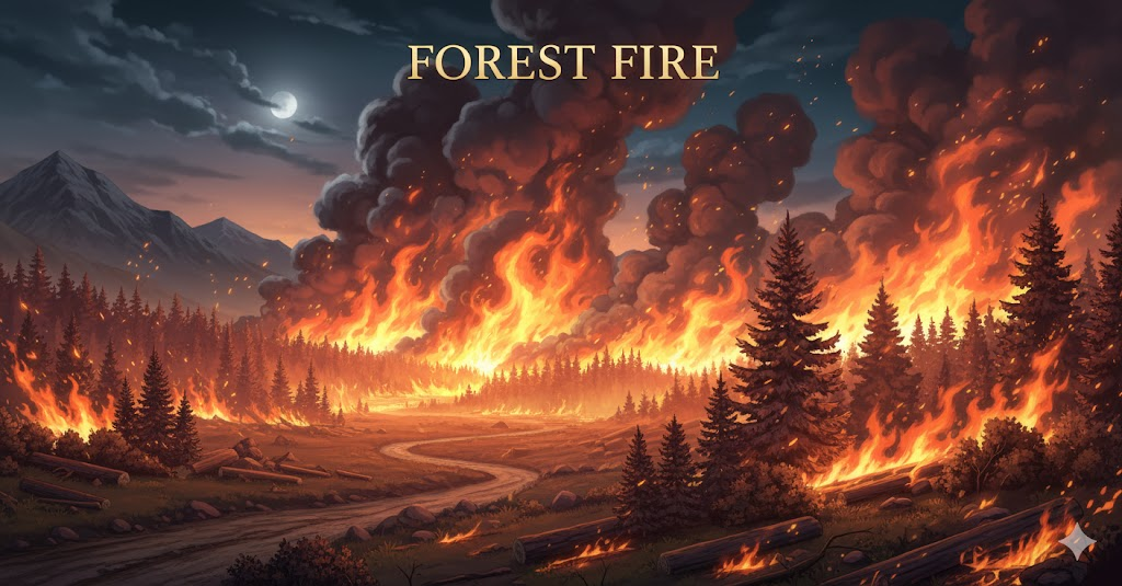Day62 - forest , forest fire , rain forest , forest conservation , deforestation , forest ranger , forest path/trail , forest ecosystem , forest clearing