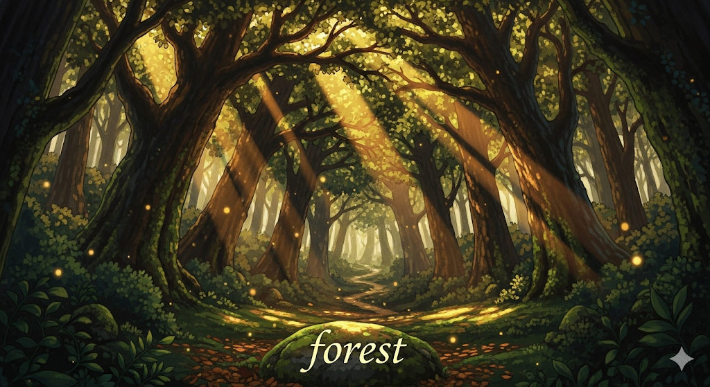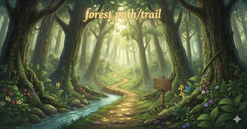 | forest | 숲 | 명사로, '길' '이' '놓여있는' '장소' '임을' 나타냄. | path/trail과 결합하여 '숲' '속' '의' '길' '임을' 나타냄. |