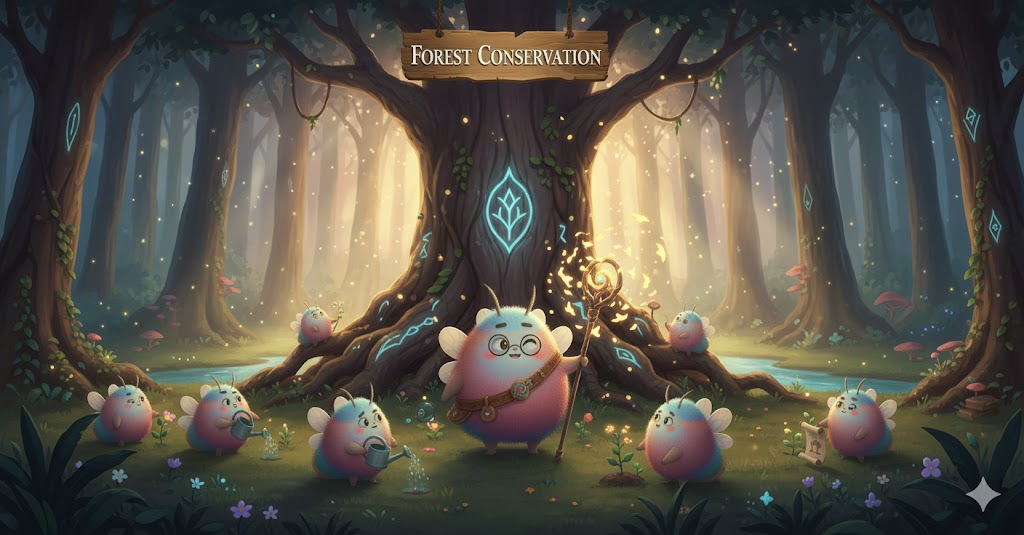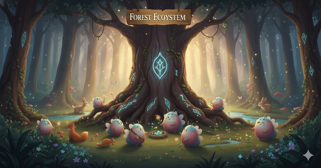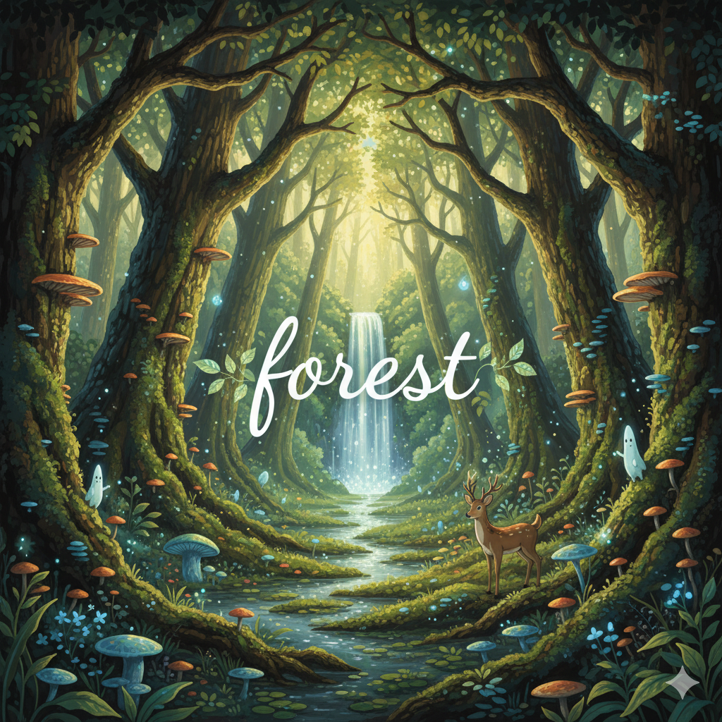 숲(forest) 내부에 서식하는 모든 생물(동물, 식물, 곤충)과 '그들을 둘러싼 비생물적 환경(토양, 기후)이 상호 작용하며 이루는 복잡한 **체계'**를 의미합니다. '생명(life)과 환경(environment)의 균형과 상호 **의존성'**에 초점이 맞추어져 있습니다.