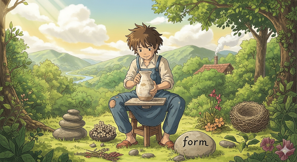 어떤 사물이 가지고 있는 외부적인 모양이나 구조를 의미합니다. 물리적인 '형태'뿐만 아니라, **공식적인 '양식'**이나 **'신청서'**를 뜻하기도 하며, 무언가를 **'만들거나 구성하는 행위'**라는 동사적 의미도 가집니다. 핵심은 **'구조와 외관'**입니다.