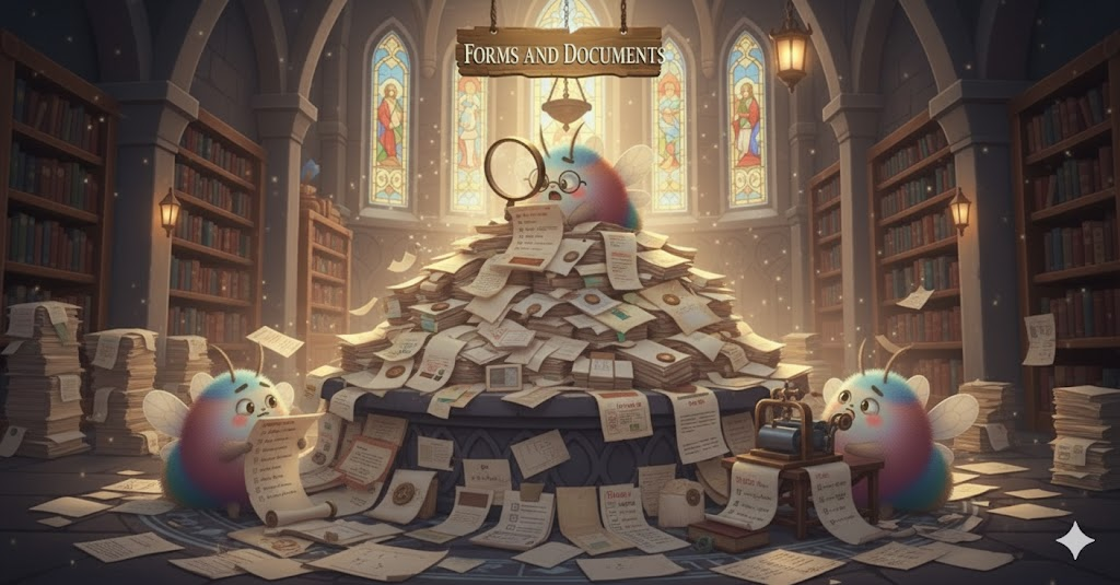 - *'forms and documents'**는 행정, 법률, 교육 등 공식적인 절차에서 사용되는 각종 서류를 통칭하는 표현입니다.