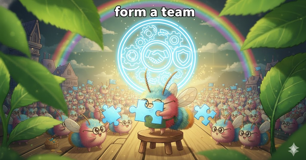 팀을 구성하다. 특정 목적을 위해 여러 사람을 모아 한 그룹으로 만드는 것.