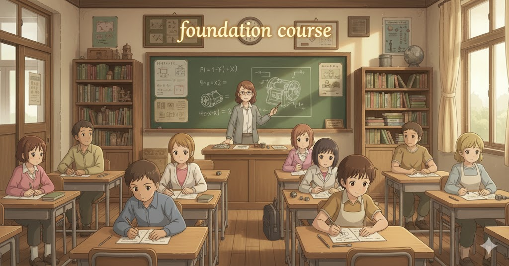 - *'foundation course'**는 주로 대학교나 전문 교육 기관에서 더 높은 수준의 학습을 위해 필요한 기본적인 지식과 기술을 가르치는 과정을 의미합니다.