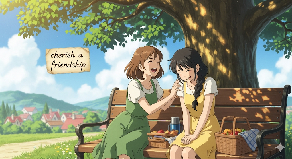 - *'cherish a friendship'**는 우정이 주는 기쁨과 가치를 깊이 인식하고 소중하게 다루는 태도를 표현합니다.