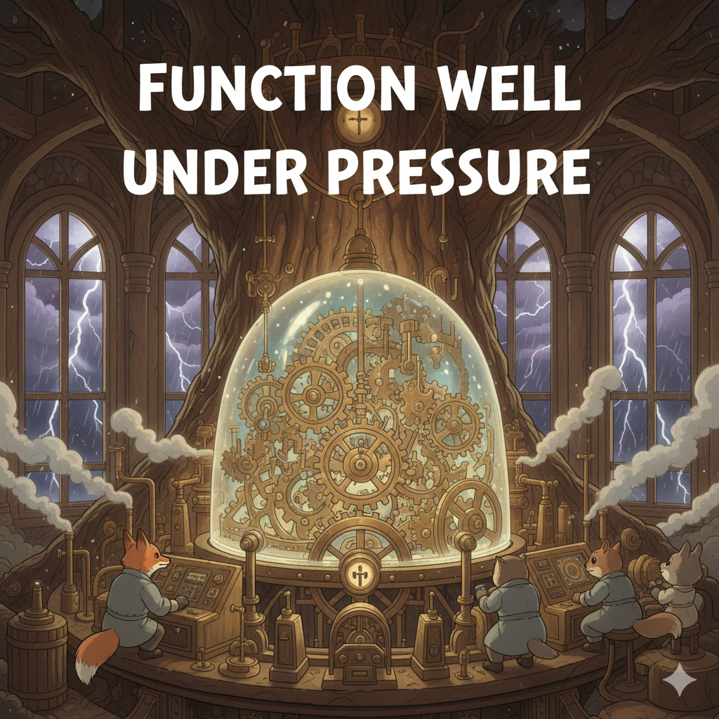 'function well under pressure'는 스트레스나 긴장된 환경 속에서도 흔들림 없이 제 역할을 해내는 뛰어난 능력을 나타내는 표현입니다.