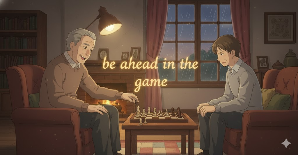 'be ahead in the game'은 실제 경기뿐만 아니라 삶의 다양한 경쟁 상황에서 다른 사람들보다 앞서 있거나 유리한 위치에 있는 상태를 나타냅니다.