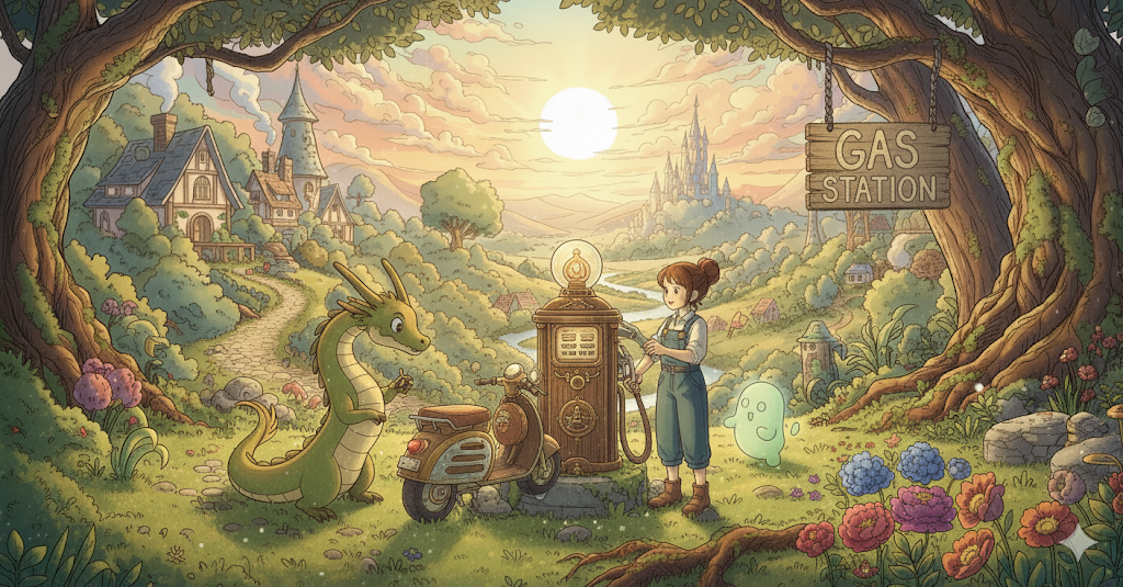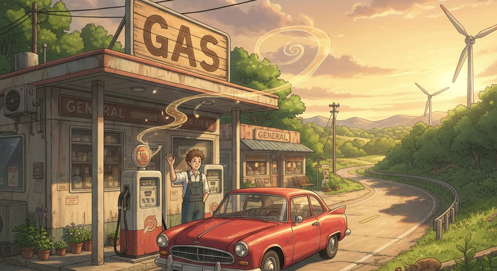 'gas station'은 차량의 연료를 보충하는 주유소를 의미하며, 긴 여정에서 필수적인 휴식처이기도 합니다.