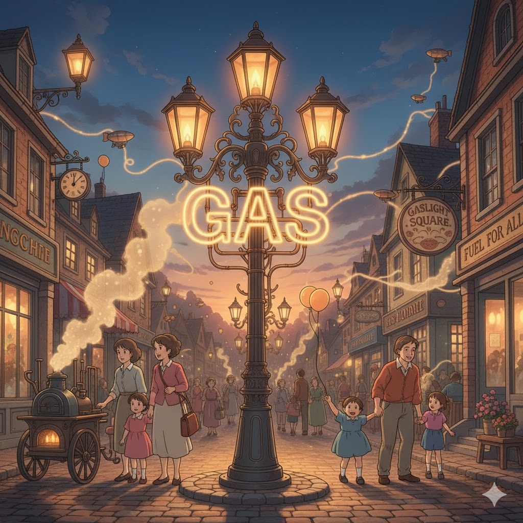 - (명사) 가스, 연료 가스: 난방, 요리, 또는 차량 운행 등에 사용되는 기체 연료.