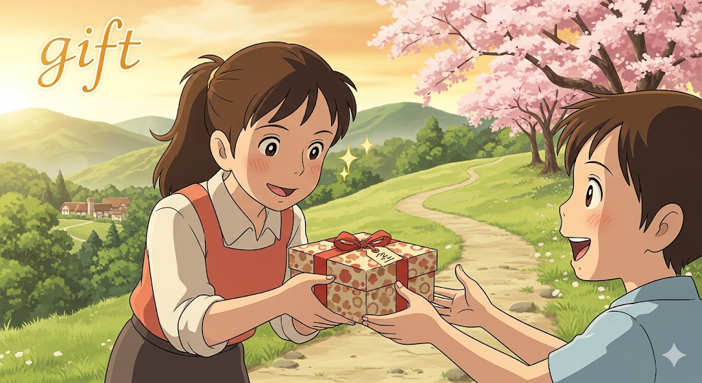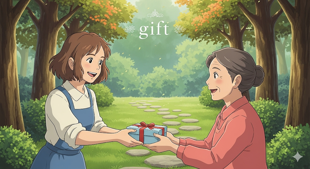대가 없이 자발적으로 누군가에게 주어지는 물건을 의미합니다. 단순히 '주는 것(giving)'을 넘어, 감사의 마음이나 축하의 의미를 담아 전달하는 **'선물(present)'**에 초점이 맞추어져 있습니다. 또한, 타고난 **'천부적인 재능'**을 뜻하는 비유적인 의미로도 사용됩니다.