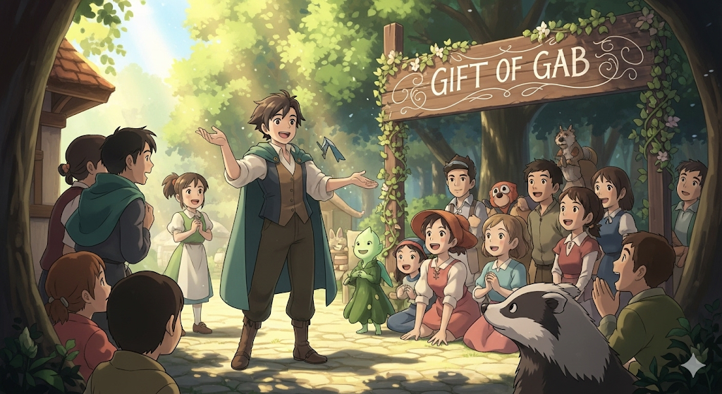 다른 사람들을 '설득(persuade)'하거나 '즐겁게 할 수 있는' '탁월한 언변(gab is slang for mouth or speech) **능력'**을 의미합니다. 이는 '타고난 재능(gift)'이며, '소통(communication)과 리더십(leadership)에 매우 유리한 **특성'**입니다.