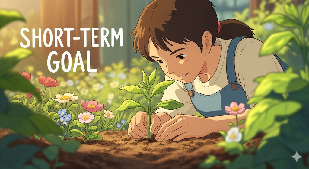- 예문: His short-term goal is to improve his English skills.