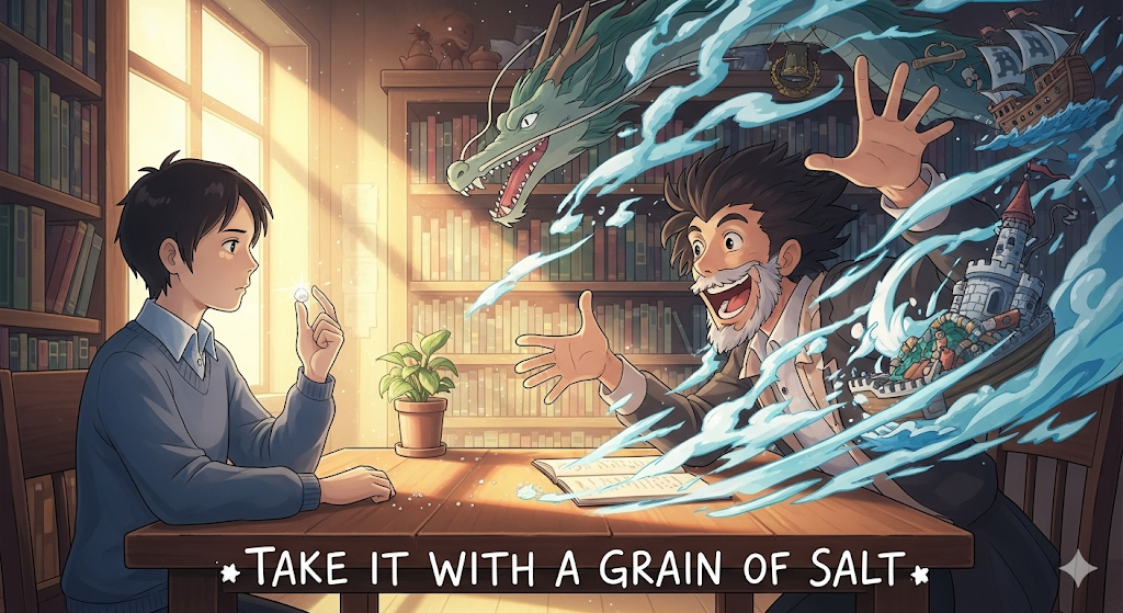 | take with a grain of salt | 가감하여 듣다 | 숙어로, '신중한' '수용'. | '소금' '을' '첨가하여' '음식의' '맛' '을' '조절하듯,' '정보' '를' '받아들일' '때' '신중해야' '한다는' '의미'. |