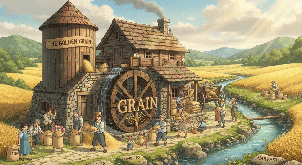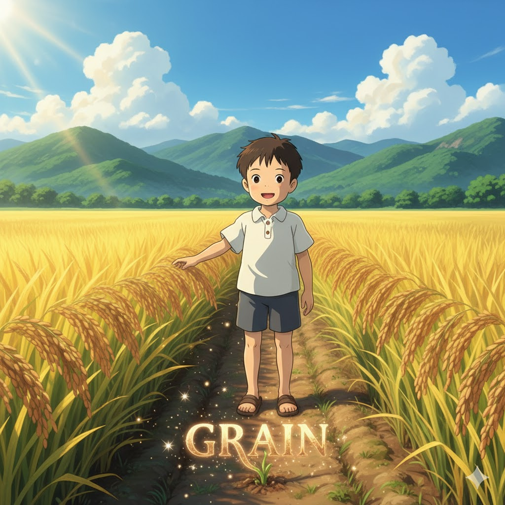 grain [ɡreɪn] 식량의 기본 단위, 작은 입자의 의미도 있음