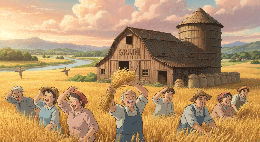 - 예문: The farmer harvested the grain from his fields.