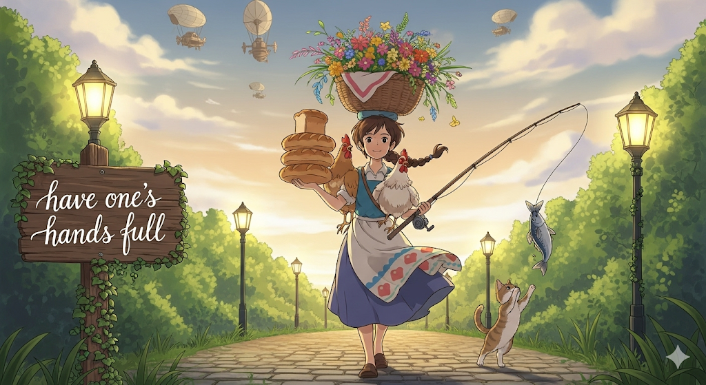 have one’s hands full [hæv wʌnz hændz fʊl]