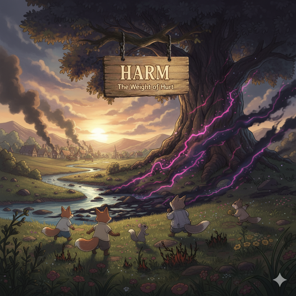 신체적, 재산적, 또는 정신적으로 고통, 손상, 또는 손해를 입히는 행위나 결과를 의미합니다. '피해(damage)'나 '위험(danger)'과 밀접하게 관련되어 있으며, **'안녕(well-being)을 해치는 모든 부정적인 영향'**이라는 개념이 핵심입니다.