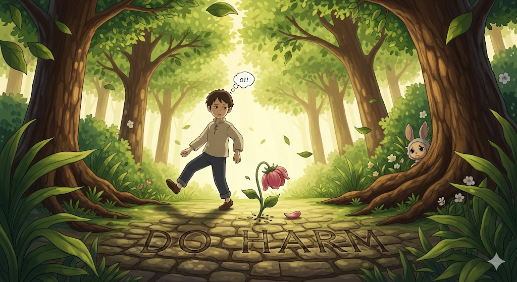 - You must promise not to do harm to any living thing. (어떤 생명체에게도 해를 끼치지 않겠다고 약속해야 한다.)
