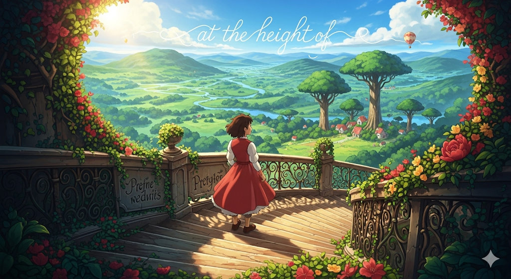 - 해석: 높은 곳에서, 높은 위치에서