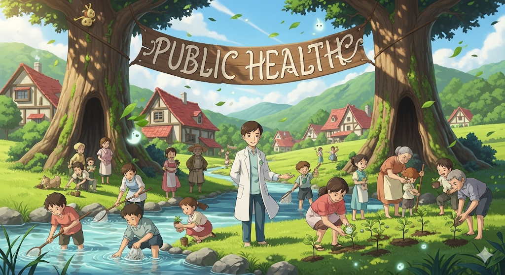 개인(individual)의 건강(health)이 아닌, '지역 사회(community) 전체 또는 국민(public) 전체의 건강 **상태'**를 의미하며, 질병(disease) 예방, 위생, 교육 등 집단적 노력(effort)을 통한 건강 증진을 목표로 합니다. '공공 차원의 건강 **관리'**에 초점이 맞추어져 있습니다.