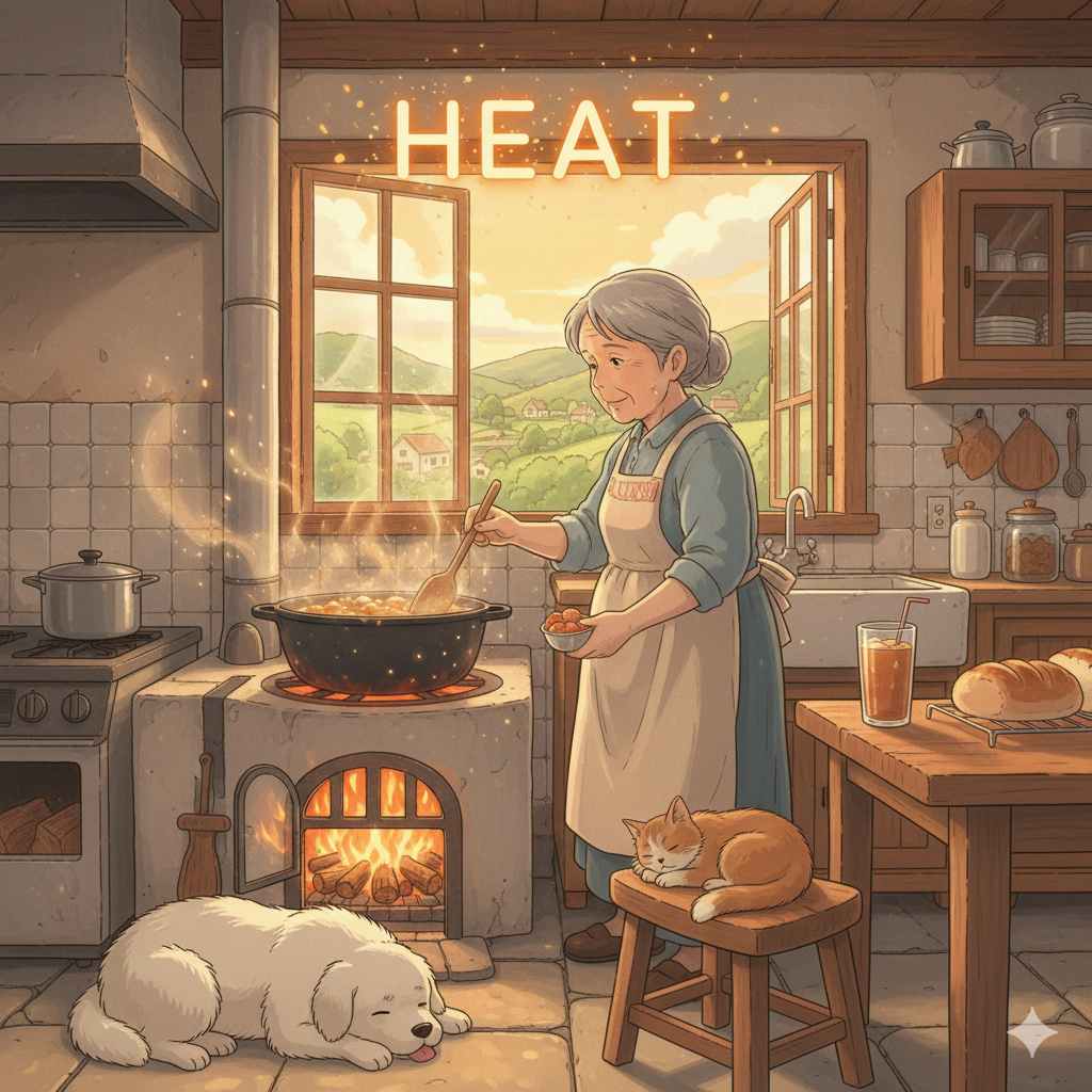 온도가 높아서 생기는 따뜻함이나 뜨거움의 물리적 에너지를 의미합니다. '열'이나 '열기'와 같은 감각적인 의미 외에, **격렬한 감정(분노, 열정)**이나 경쟁의 치열함을 비유적으로 나타낼 때도 사용됩니다. 핵심은 **'온도의 높음'**과 **'강렬한 에너지'**입니다.