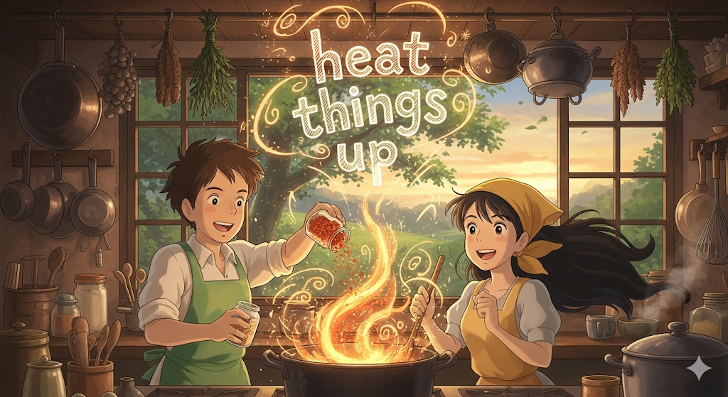 - The manager tried to heat things up by introducing a new bonus system. (매니저는 새로운 보너스 시스템을 도입하여 분위기를 더 뜨겁게 만들려고 노력했다.)