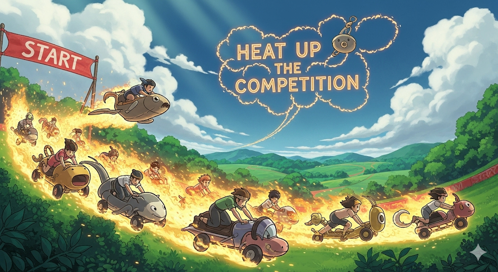 heat up the competition [hiːt ʌp ðə ˌkɑːmpəˈtɪʃən]