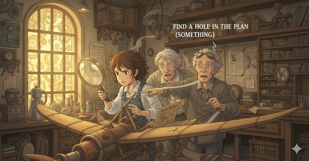 계획, 논리, 법률(law), 또는 증거(evidence) 등의 '불완전하거나 결함(hole, fault)이 있는 부분'을 날카롭게 찾아내는 행위를 의미합니다. '논리의 약점(weak link)을 공격하거나 악용하기 위한 **탐색'**에 초점이 맞추어져 있습니다.