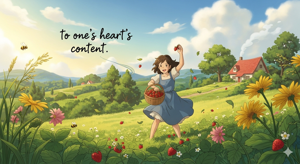 '자신의 마음(heart)이 완전히 만족(content)할 때까지' 충분하고 제한(limit) 없이 어떤 행위나 활동을 하는 것을 의미합니다. '충분한 양 혹은 시간 동안 즐거움(enjoyment)을 누리는 **것'**에 초점이 맞추어져 있습니다.