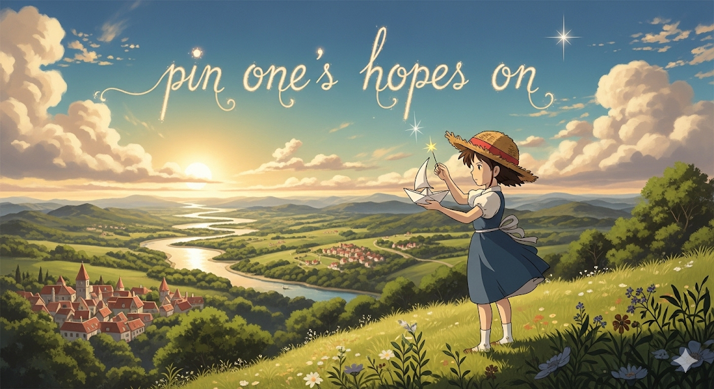 자신의 희망(hopes)이나 기대(expectation)를 특정 사람, 계획, 또는 사건에 '고정(pin)시키고', 그것이 성공(success)을 가져올 것이라고 전적으로 의지(depend)하는 행위를 의미합니다. '의존 대상을 확정하고 거기에 모든 것을 **걸다'**는 뉘앙스에 초점이 맞추어져 있습니다.